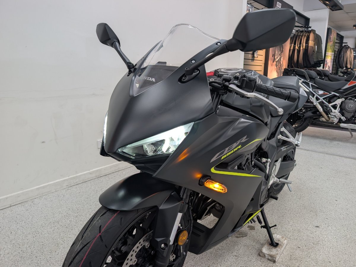 The Honda CBR650R is a four-cylinder middleweight sports bike that is smooth, fast and versatile. Filled with premium technology and convenience with the choice of riding with the Honda E-Clutch system. Packaged with race styling inspired by the Fireblade, CBR650R is ready to deliver performance perfect for your practical day-to-day ride and weekend fun.
