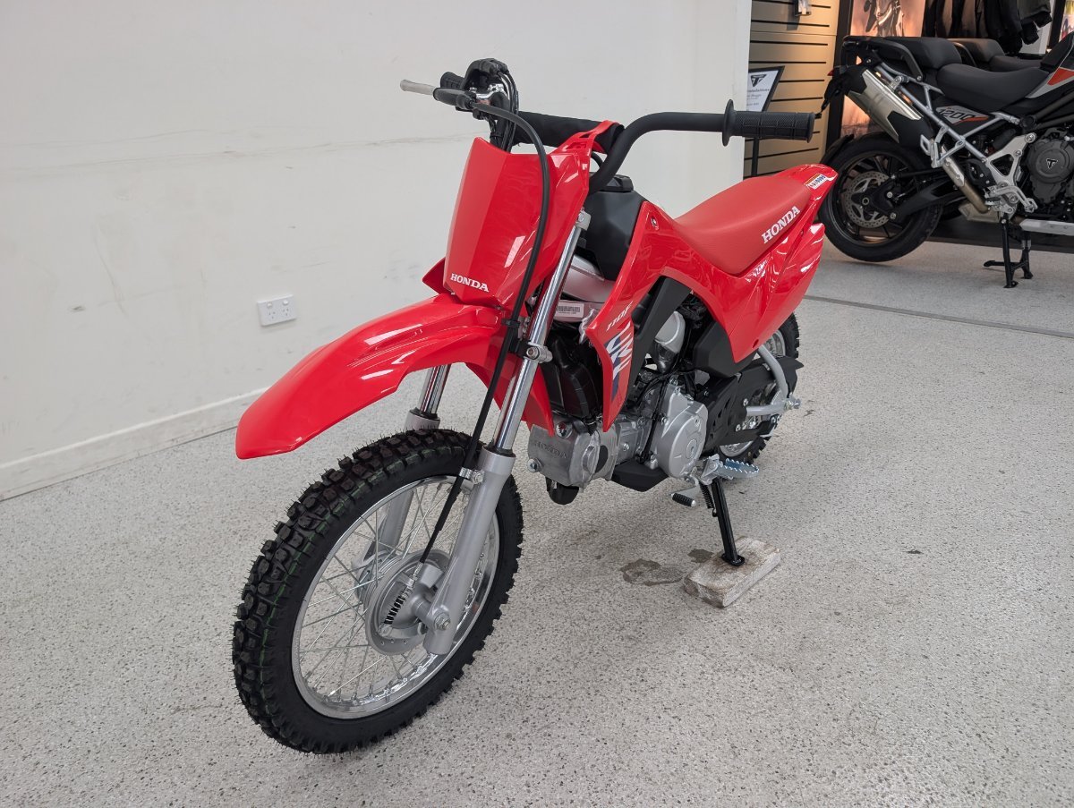 Was from $3998 now from $3598 save $400! The Offer commences on 20 February 2026 and ends on 30 April 2026, while stocks last!^^The Honda CRF110F may be small, but it?s mighty! Loaded with features and sporting championship-winning stylings. It all starts with Honda?s legendary air-cooled single-cylinder engine with a proven four-speed transmission and automatic clutch. It lets you shift when you want, but not worry about stalling. Fuel injectors help the CRF110 start easier and run better in cold weather and high altitudes, with less pollution. Plus, there?s plenty of suspension travel, seat padding, and a rugged steel frame. Put it all together and you have a machine that?s as fun for youngsters to ride as it?s easy for parents to own.