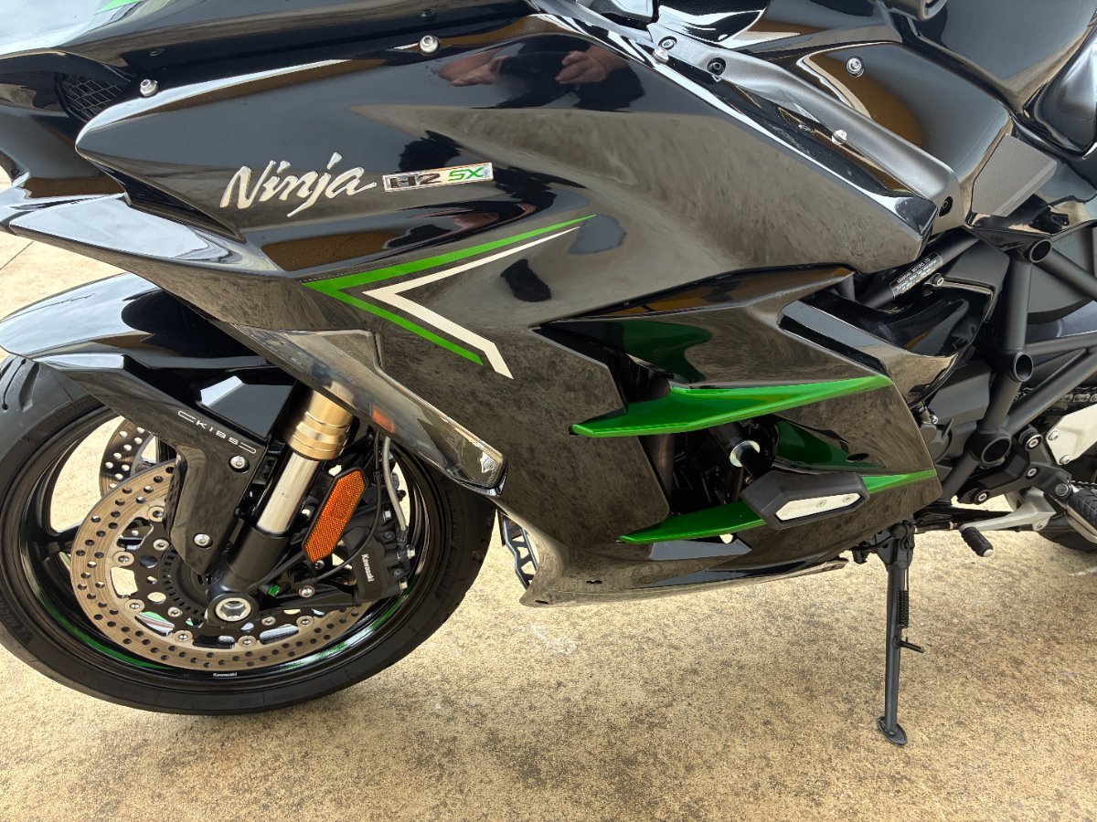 2024 Kawasaki Ninja H2 SX is the kind of bike that stops people in their tracks. With its supercharged 1000cc engine, it delivers that signature H2 punch instant boost, relentless pull, and a surge of power that feels like it's trying to bend the horizon. It rides with the smoothness of a premium sports tourer but hits with the force of a true hypersport, making every throttle roll addictive.^^This example has very low kilometres and presents beautifully, looking every bit as sharp as it rides. It's fitted with an aftermarket front screen for better wind protection and an upgraded pipe that gives the supercharged engine the deep, aggressive soundtrack it deserves. The combination of performance, comfort, and presence makes this H2 SX a standout machine for riders who want something genuinely special.^^It?s fast, refined, and absolutely alive with character an exceptional bike for anyone chasing supercharged performance with real?world usability.